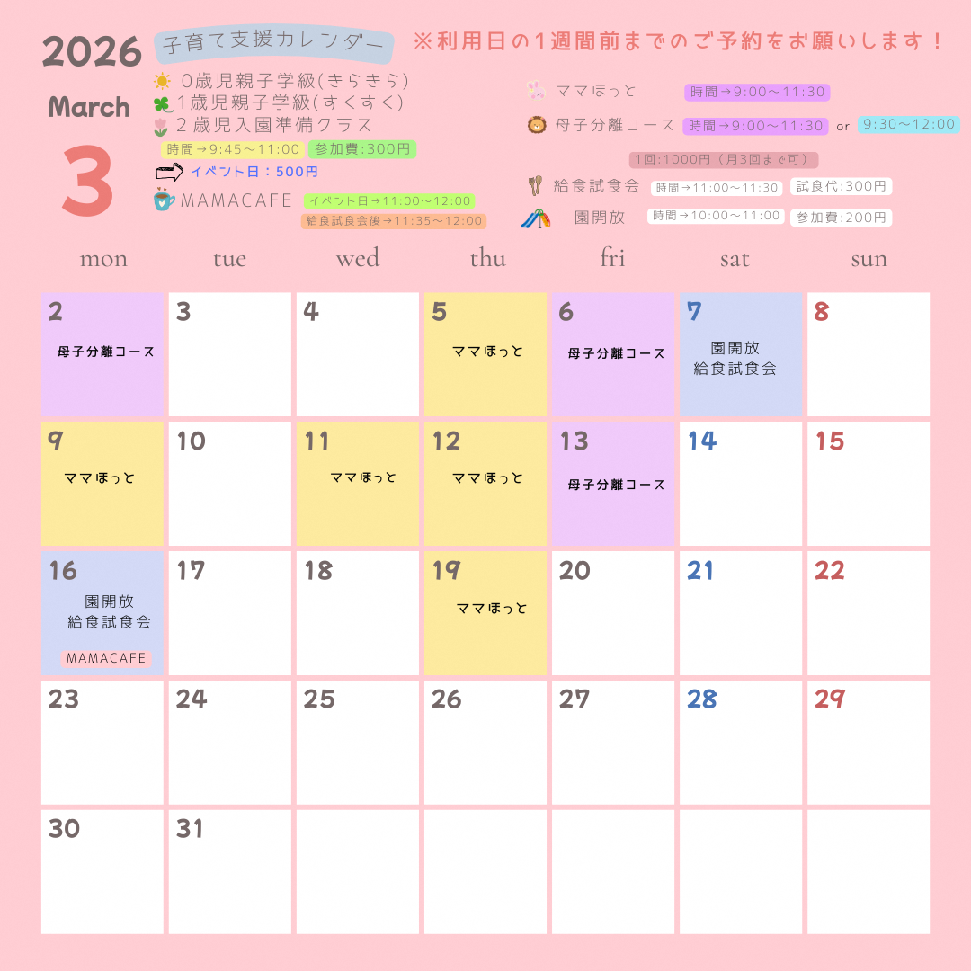 なお、開催日以外の毎週火・木・金は園庭を開放しています。